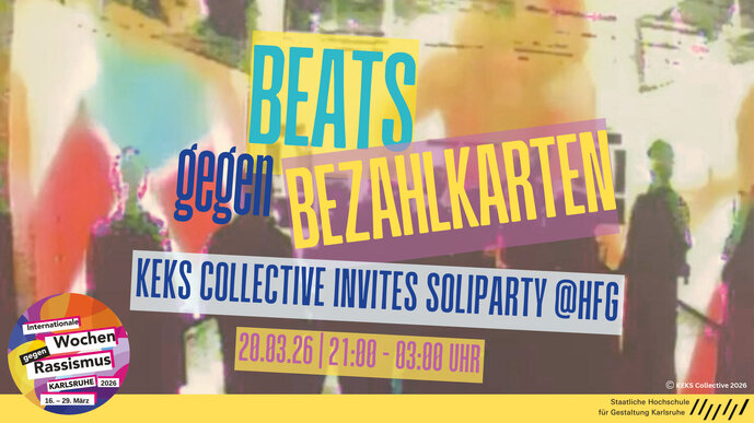 Das KEKS Collective lädt am Freitagabend, 20.03.2026, im Rahmen der Internationalen Wochen gegen Rassismus zum solidarischen Tanzen und Spenden in der Staatlichen Hochschule für Gestaltung Karlsruhe ein. Gemeinsam mit der Initiative Nein zur Bezahlkarte Karlsruhe setzt die Veranstaltung ein Zeichen gegen Rassismus und strukturelle Ausgrenzung.