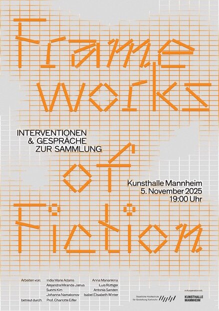 Im Rahmen einer Kooperation zwischen der Hochschule für Gestaltung Karlsruhe und der Kunsthalle Mannheim (Luisa Heese) setzten sich Studierende im Seminar „Frameworks of Fiction“ unter der Leitung von Prof. Charlotte Eifler kritisch und künstlerisch mit der Sammlung auseinander, um diesen Fragen nachzugehen.