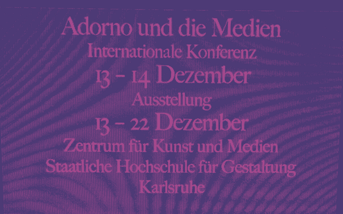 Im Rahmen der Konferenz wird die Ausstellung „Adorno und die Medien“ im ZKM | Zentrum für Kunst und Medien eröffnet.