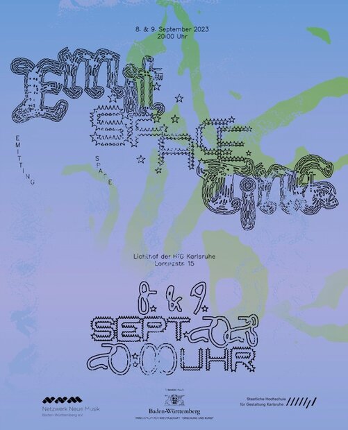An zwei Abenden findet in den einzigartigen Räumlichkeiten des Lichthofs der HfG eine ortsspezifische Komposition „Emitting Space“ des Hamburger Komponisten Michael Maierhof, gespielt vom LJE Landesjugendensemble Neue Musik Baden-Württemberg statt.