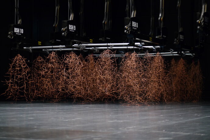 Simple Stromkabel oder die Adern der elektronischen Welt wachsen zu Kupferskulpturen heran, die vom Besucher durchschritten und erlebt werden können. Berührungen erzeugen durch analoge Bauteile auf Platinen einen Klang und fragile, in Ton gefasste Lautsprecher brechen unter der Last ihrer eigenen Resonanz zusammen.