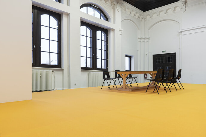 Das Stockholm-Syndrom beschreibt ein psychologisches Phänomen, bei dem Opfer eine emotionale Bindung zu Tätern aufbauen, sich mit diesen identifizieren und sogar durch eigenes Handeln stabilisierend auf das Opfer-Täter-Verhältnis einwirken. Die Gruppenausstellung „Stockholm Syndrome“ überträgt dieses Kippmoment von Kritik oder distanzierter Teilhabe zu Affirmation auf die Strukturprinzipien postfordistischer Gesellschaften. Zwänge der Lohnarbeit werden dort zunehmend von Forderungen nach intrinsischer Motivation und Selbstverwirklichung verdeckt und so die Grenzen zwischen Privatheit und Arbeit, kollektiver und individueller Identität, Emotion und Arbeitsökonomie verwischt. Die Ausstellung widmet sich den Regeln von auf Verführung und Manipulation basierenden Mechanismen und wie diese sich in Formen von Arbeit, Gemeinschaft und Architektur in unseren Alltag einschreiben.