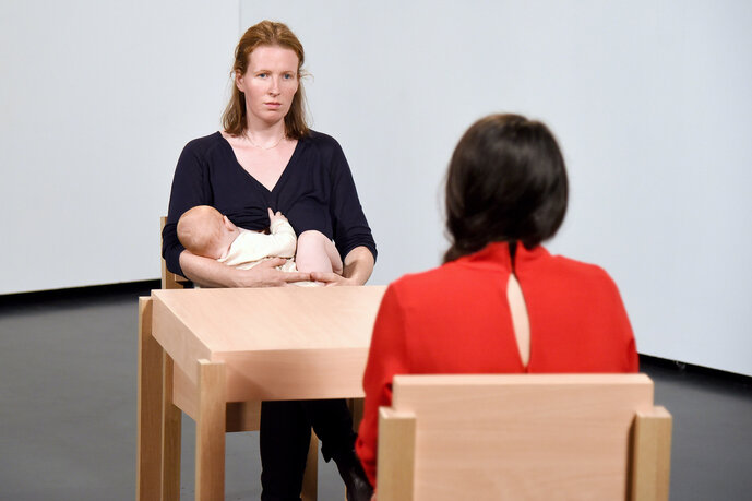 In den beiden Videoarbeiten konfrontiert Hannah Cooke jeweils die Künstlerinnen Tracy Emin und Marina Abramović, die sich in Interviews negativ über die Vereinbarkeit von Mutterschaft und Kunst geäußert haben.