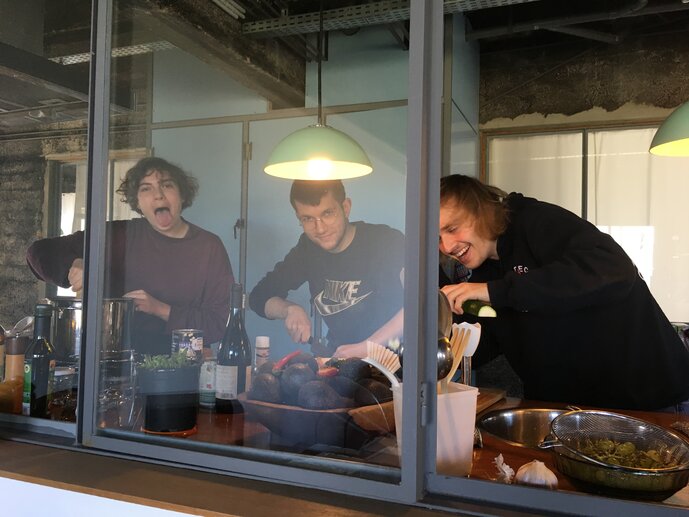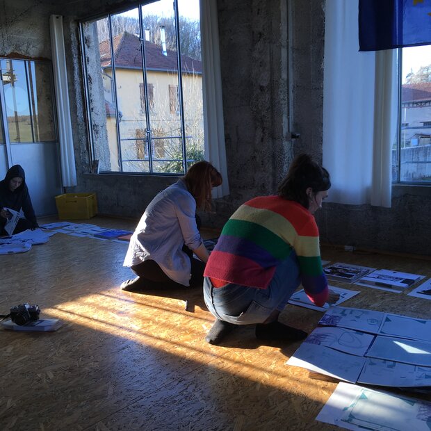 Bei Abendessen und Wein haben wir uns das Konzept eines einzigartigen Austauschprogramms ausgedacht: eine Reihe von einwöchigen umfassenden Residencies, die sich zwischen Frankreich und Deutschland hin und her bewegen, abgerundet durch eine Wiedersehen an einem Wochenendtreffen am Ende des Semesters. Auch wenn immer nur ein Studierender auf einmal reist, treffen sie wieder auf die Personen, die bereits ihre Hochschule besucht haben und lernen die kennen, die noch kommen werden, was eine Gruppendynamik unter den Austauschstudierenden schafft. Camille und Paul mussten gehen, aber bald wurde unser Team durch den HfG-Studenten Moritz Schottmüller und die EnsAD-Studentin Eugénie Zuccarelli ergänzt. Dank der Unterstützung von Melanie Schillo des International Office der HfG Karlsruhe konnten wir die Ausgaben für die HfG-Studierenden durch Mittel des DAAD decken. Ab dann arbeiteten wir als Team, um diesen Austausch zu ermöglichen.