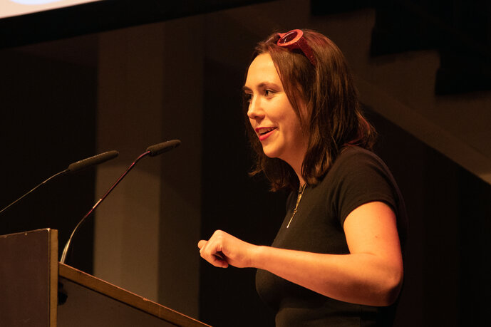 Wir sprechen für unseren gesamten Fachbereich, aber sicherlich auch für alle, die sonst wie mit Nina in Kontakt stehen: Wir freuen uns außerordentlich, Nina heute diesen Preis übergeben zu dürfen. Herzliche Gratulation!", so Johnson / Kingston.