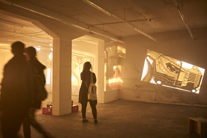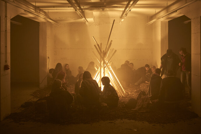 Die dreiwöchige Ausstellung und Kulturfestival "no tree, it is said, can grow to heaven unless its roots reach down to hell“ belebt vom 19. Oktober bis 9. November 2019 das Gelände einer ehemaligen Dampfschreinerei in der Karlsruher Südweststadt. Organisiert wird die Ausstellung von der Initiative "Die Anstoß e.V." und zeigt Arbeiten aus den Bereichen Skulptur und Malerei, aber auch Raumumgebungen, die auf unterschiedliche Weise mit den Medien Video, Sound, Malerei und Skulptur arbeiten.