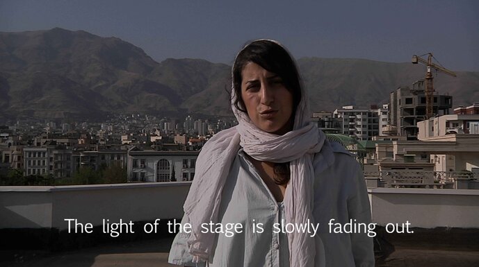 Zoom Out: Dach im Norden Teherans. Sara Reyhani, virtuelle Tänzerin, imaginiert die Blick-Regime verschiedener unsichtbarer Bühnen.