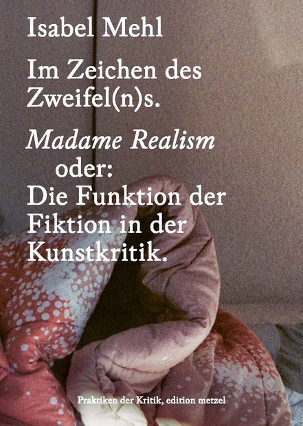 Isabel Mehl hat 2015 ihr Studium der Kunstwissenschaft an der HfG Karlsruhe mit einem Magister abgeschlossen. Im Anschluss promovierte sie an der Leuphana Universität Lüneburg am Graduiertenkolleg „Kulturen der Kritik“. Nun erscheint ihre Dissertation unter dem Titel „Im Zeichen des Zwiefel(n)s. Madame Realism oder: Die Funktion der Fiktion in der Kunstkritik“ bei edition metzel / Verlag Silke Schreiber in München https://editionmetzel.de/buecher/im-zeichen-des-zweifelns-madame-realism.html