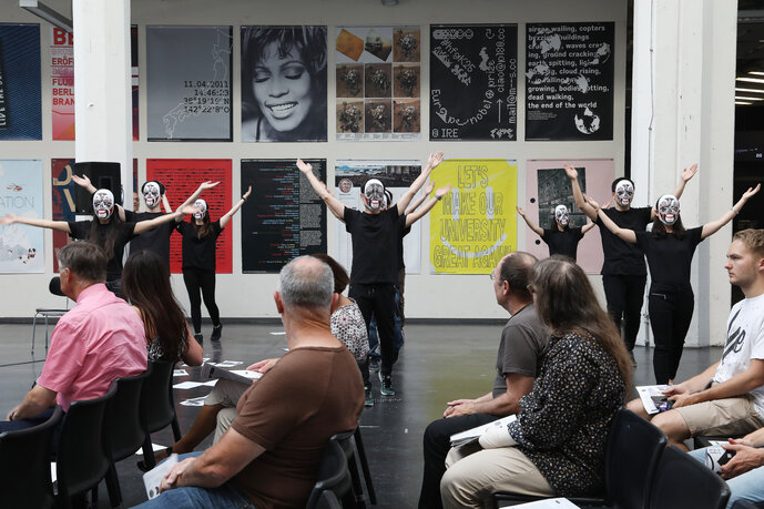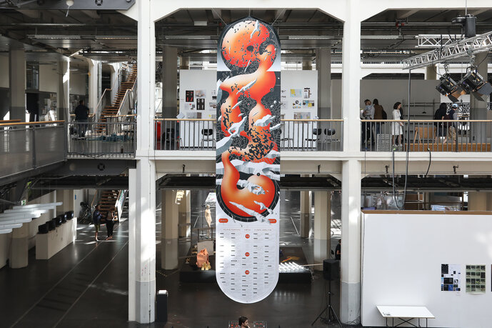 Die offene Architektur des Hallenbaus, die der Hochschule ihre besondere Atmosphäre verleiht, wurde mit Ausstellungswänden und Podesten neu interpretiert. Deren Anordnung in parallelen Reihen mit Unterbrechungen schuf Durchgänge und Blickbeziehungen. Die Ausstellungsarchitektur wurde innerhalb der Fachgruppe Ausstellungsdesign und Szenografie entwickelt und ließ eine in besonderer Weise variable Gestaltung der räumlichen Strukturen zu.