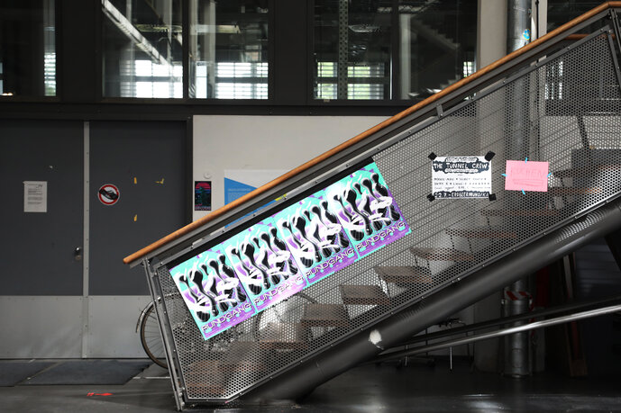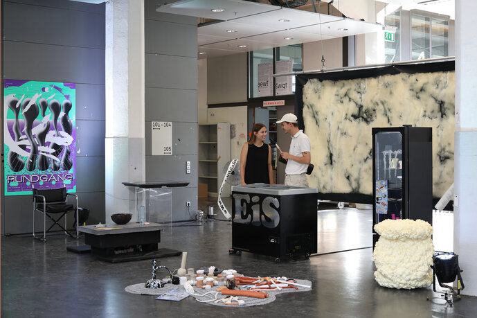 Studierende aus den fünf Fachgruppen stellten ihre Arbeiten der vergangenen zwei Semester der Karlsruher Öffentlichkeit vor. Dabei wurden die Grenzen zwischen den Studienrichtungen Ausstellungsdesign und Szenografie, Kommunikationsdesign, Kunstwissenschaft und Medienphilosophie, Medienkunst sowie Produktdesign neu ausgelotet, um die Interdisziplinarität der HfG Karlsruhe mit ihrer akademischen Freiheit und Offenheit darzustellen. Als Rückblick auf 25 Jahre wurden in die Ausstellung bewusst Elemente sowie Alumni-Arbeiten integriert, die auf die Geschichte der Hochschule verwiesen. Die Werke traten miteinander in einen räumlichen und inhaltlichen Dialog, den die Besucherinnen und Besucher im Erdgeschoss und im ersten Geschoss erleben konnten.