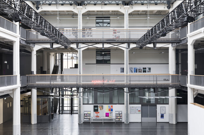 Seit 1999 gemeinsam mit dem ZKM unter einem Dach im historischen Hallenbau der alten Waffen- und Munitionsfabrik entstand eine einmalige Verbindung von Lehr-, Forschungs- und Ausstellungsinstitutionen. Die räumliche Nähe und die enge konzeptuelle Verbindung führten zu einer langjährigen Zusammenarbeit, von der auch unsere Studierenden aller Fachbereiche profitieren.