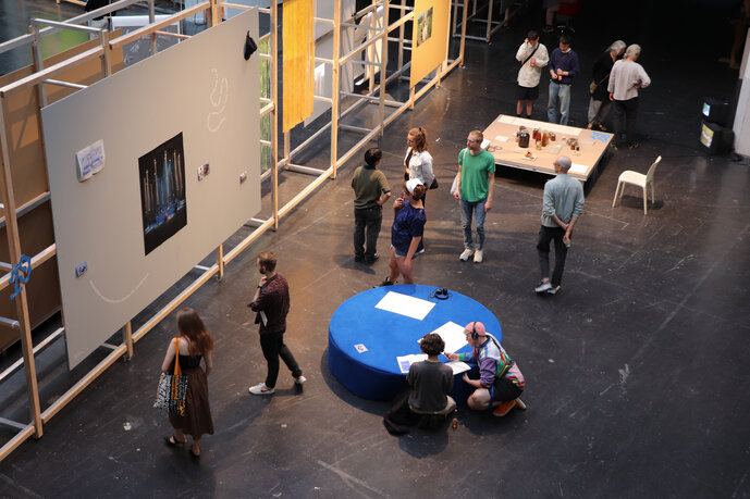 Beim Tag der offenen Tür werden ausgewählte Arbeiten von Studierenden aus den Bereichen Ausstellungsdesign und Szenografie, Kommunikationsdesign, Kunstwissenschaft und Medienphilosophie, Medienkunst und Produktdesign präsentiert. Besucher:innen bekommen Einblicke in künstlerische und theoretische Arbeiten, Produkte, Entwürfe und Konzepte. Die Ideen einer neuen Generation von Künstler:innen, Designer:innen, Kurator:innen, Szenograf:innen, Philosoph:innen, Kunsthistoriker:innen, Filmregisseur:innen und Fotograf:innen werden dem Publikum präsentiert. Ausgestellt wird in den Lichthöfen im Erdgeschoss, die sich die Studierenden mit ihren Arbeiten aneignen dürfen.