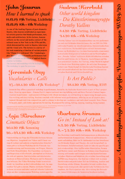 Vortrag 28. Januar, 19 Uhr, Szenostudio (HfG Karlsruhe) // Workshop 27.+ 28. Januar, täglich 13–17 Uhr, Badischer Kunstverein (Waldstraße 3, Karlsruhe)