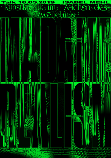 Madame Realism (geb. 1985) ist eine fiktive Kunstkritikerin, die entstand als Craig Owens die US-amerikanische Autorin Lynne Tillman fragte, ob sie für die Kunstzeitschrift Art in America über eine Renoir-Ausstellung in Boston schreiben wolle. Die mittlerweile siebzehn Madame Realism Texte erschienen überwiegend in Art in America, aber auch in Künstler*innenmonografien oder Ausstellungskatalogen. Madame Realism driftet zwischen Fakt und Fiktion, zwischen New York und Umgebung, ihrer Wohnung im East Village und der sie umgebenden Großstadt New York, zwischen Kunstwerken und Kontexten, Gesellschaft und ihren Randgebieten, Repräsentation und dem Nicht-Repräsentierten. Madame Realism ist eine Agentin des Zweifels, der stetigen Bewegung zwischen möglichen Standpunkten. An ihrem Beispiel soll nachvollzogen werden wie sich im Drift zwischen kritischem und erzählerischem Anspruch ein besonderes Potential für die Annäherung an den Gegenstand der Kritik, Kunst, entwickeln lässt.