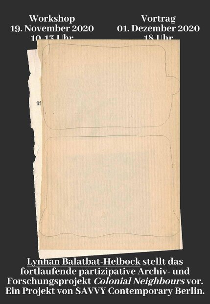 COLONIAL NEIGHBOURS ist ein fortlaufendes partizipatives Archiv- und Forschungsprojekt, das sich mit der DEUTSCHEN KOLONIALGESCHICHTE und ihren Nachwirkungen und Kontinuitäten in die Gegenwart auseinandersetzt. Durch den kollektiven Sammlungsprozess werden Lücken und Auslassungen im deutschen kollektiven Gedächtnis adressiert sowie dominante Wissensordnungen und Geschichtsschreibungen hinterfragt. Das Archiv dient darüber hinaus als Plattform für Diskussionen und Austausch und als Ausgangspunkt für Kollaborationen mit Akteur*innen unterschiedlicher Sparten.