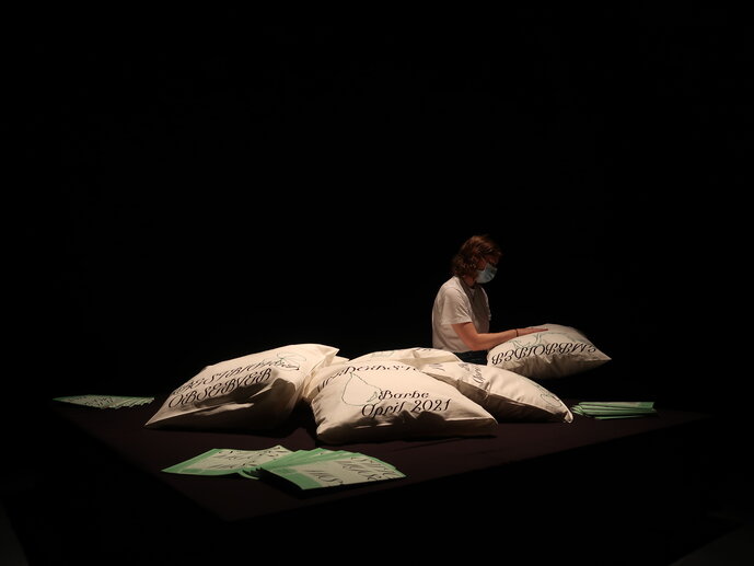 In dem Heft sind ihre Erzählungen zu entdecken, welche durch Recherchematerial unterstützt werden. Aussagen von Barbe wurden mit der Maschine auf 6 Kissenbezüge (60x60 cm) gestickt. Durch die diverse Bereitstellung von BARBE als Schrift für Druck-, Digital- und Sticksoftware, wird ihr ermöglicht, immer wieder neue Geschichten zu erzählen und sich neu zu verewigen.