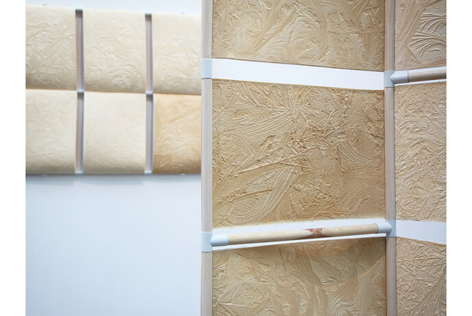 Die Entwürfe Steins erlauben es, die Paneele individuell zu gestalten, mit einem geringem Packmaß zu transportieren und rahmenlos zu verwenden. Durch die intensive Auseinandersetzung mit dem Material, der Firma und dem Herstellungsprozess hat sie in enger Zusammenarbeit mit eco-softfibre neuartige Verbindungsmöglichkeiten, Anwendungsformen und Nutzbarkeiten erarbeitet, die den physikalischen Ansprüchen des Materials gerecht werden. Sie gestaltete eine externe Systemlösung für die Standardpaneele, welche es erlaubt, das Material individuell und modular als Trennwand oder Wandpaneel zu verwenden. Darüber hinaus entwickelte sie dreidimensionale Oberflächenstrukturen, die nicht nur die Formsprache optimieren, sondern es zudem erlauben, verschiedene Elemente des Weichschaumstoffs miteinander zu verbinden.