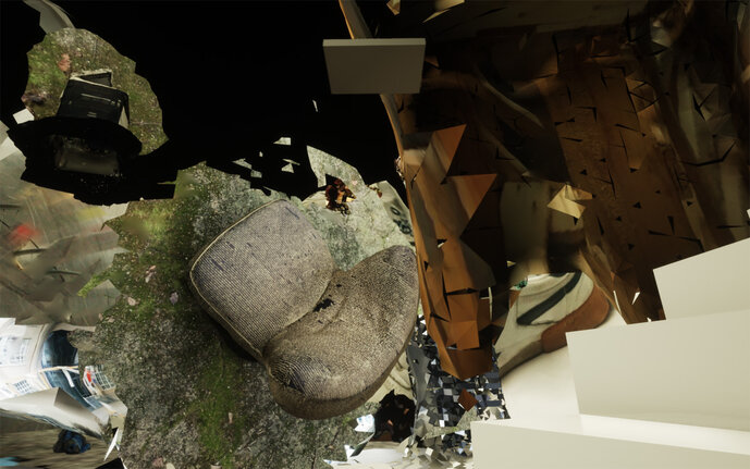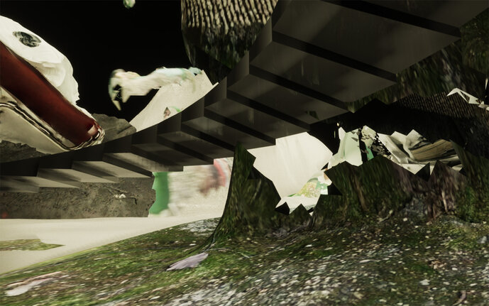 For the final implementation of the project a commercial 3D-scan app was used on a smartphone. With the targeted use of this program and various everyday objects, the desired aesthetics of the objects could be achieved especially well. Atmospherically, the game is accompanied by audio tracks recorded in everyday life, which become louder, softer or mix as the position in the virtual space changes. In combination with the mystical lighting, an exciting dystopian setting emerges in virtual space.