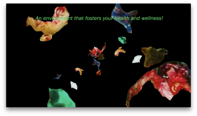 The five-minute loop Vitamin CCC approaches the research material through a narrator who talks about the day-to-day of the job, while visually, clips of screenshots of the work can be seen. At first it appears as if you are watching somebody perform their work of sorting through images. Increasingly, however, unlinked fragments move across the “screen,” some recognizable as parts of the body, mostly hidden behind their pictorial estrangement.