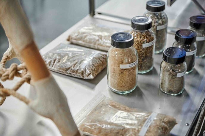 Das Wissen über diese Ressourcen wird durch die Erstellung eines Know-how-Glossars und einer Materialbibliothek destilliert, durch virtuelle und physische Workshops vermittelt, sowie durch die Präsentationen herausragender Projekte, die sich mit nachhaltigen Materialien befassen, kommuniziert.