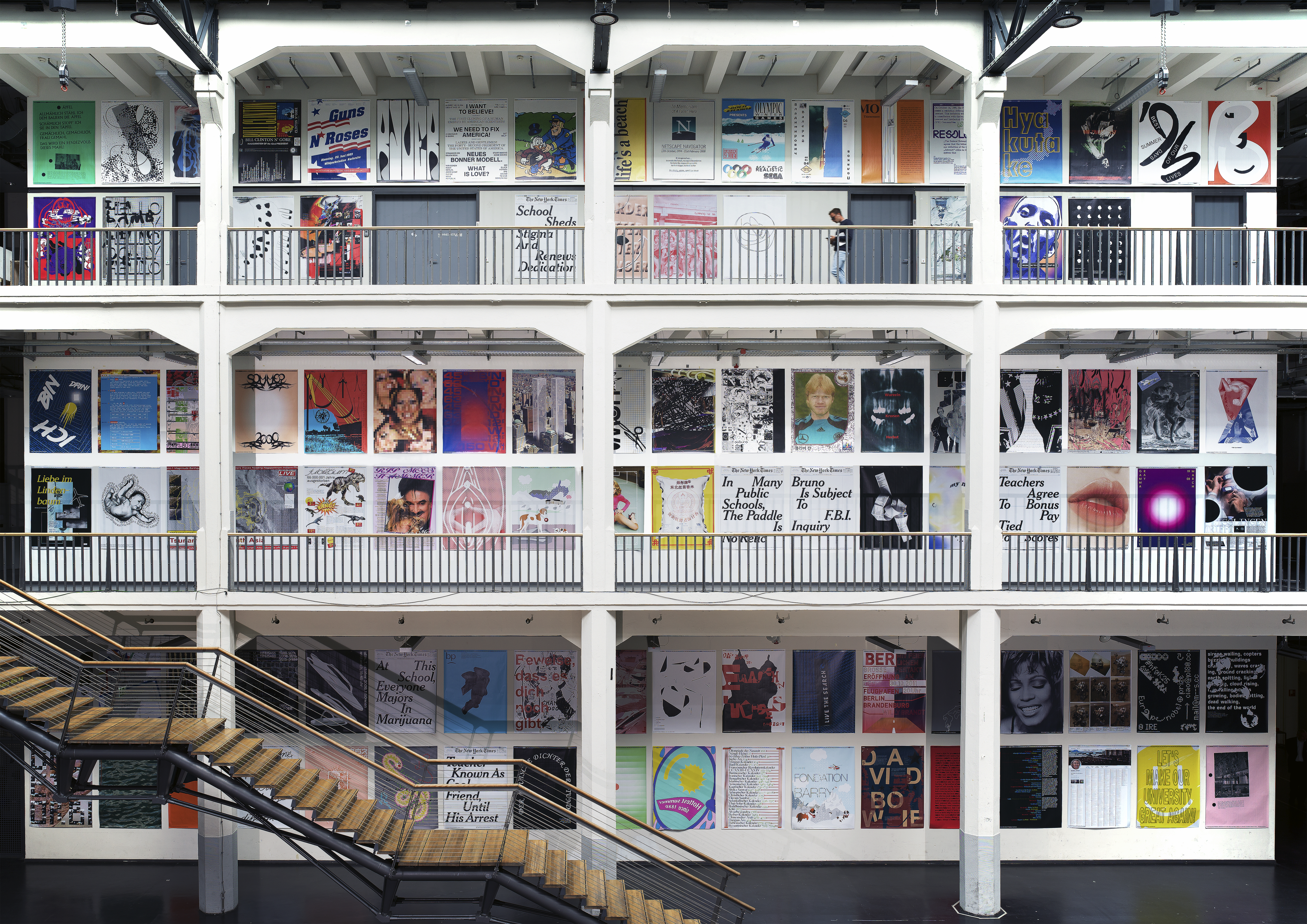 Plakatwand von Studierenden und Lehrenden aus dem Studiengang Kommunikationsdesign (2017), Foto: Evi Künstle (© HfG Karlsruhe)
