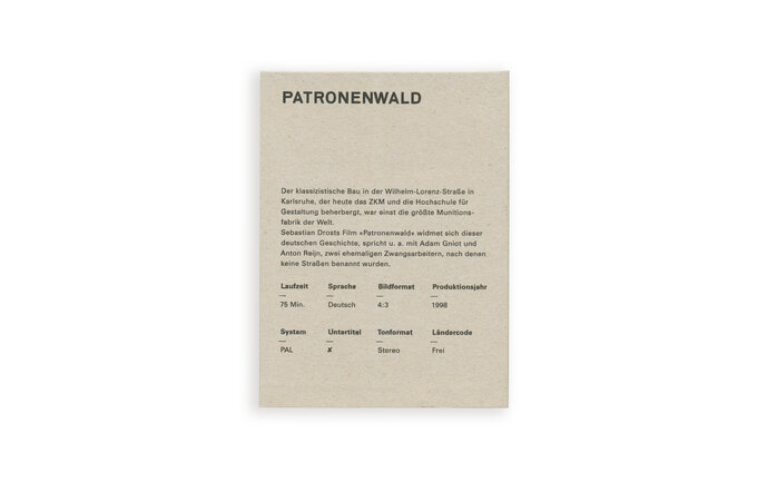 Sebastian Drost erschließt in seinem Anfang 1998 uraufgeführten Dokumentarfilm die Geschichte der Fabrik und der „Fremdarbeiter“. Mit authentischem Material – darunter Schriften, Verordnungen und Erlasse aus dem Generallandesarchiv in Karlsruhe und Interviews mit ehemaligen polnischen und holländischen Zwangsarbeitern – schafft er an einem exemplarischen Beispiel ein beklemmendes Dokument der nationalsozialistischen Praxis. Die parallel zum Film erschienene Publikation ist um eine Auswahl des Materials zu einer Geschichte der Zwangsarbeiter in den deutschen Waffen- und Munitionsfabriken Karlsruhe erweitert.
