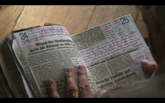 Seit Jahrzehnten setzt sie die Tageszeitung in ihren Tagebüchern neu zusammen: Der Wetterbericht von 1989, Katastrophenmeldungen vom Januar 2009. Mückenstiche. Nele Wohlatz’ Oma allein in ihrer Wohnung.