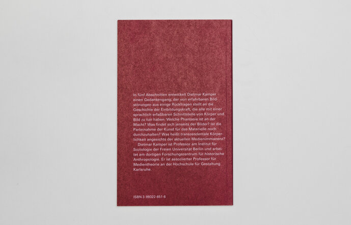 In fünf Abschnitten entwickelt Dietmar Kamper einen Gedankengang, der von erfahrenen Bildstörungen aus einige Rückfragen stellt an die Geschichte der Einbildungskraft, die alle mit einer sprachlich erfaßbaren Schnittstelle von Körper und Bild zu tun haben: Welche Phantasie ist an der Macht? Was findet sich jenseits der Bilder? Ist die Parteinahme der Kunst für das Materielle noch durchzuhalten? Was heißt transzendentale Körperlichkeit angesichts der aktuellen Medienimmanenz?