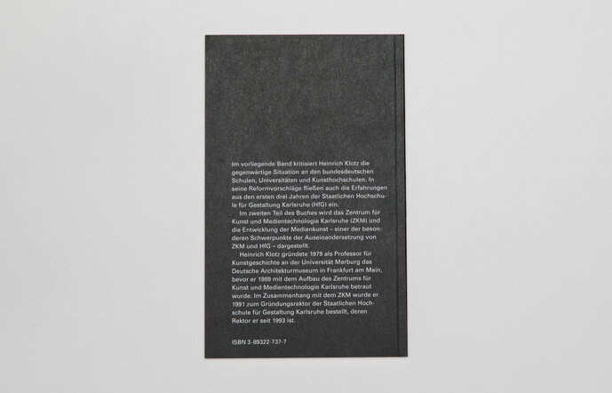 Im vorliegenden Band kritisiert Heinrich Klotz die gegenwärtige Situation an den bundesdeutschen Schule, Universitäten und Kunsthochschulen. In seinen Reformvorschläge fließen auch die Erfahrungen aus den ersten drei Jahren der Staatlichen Hochschule für Gestaltung (HfG) ein.