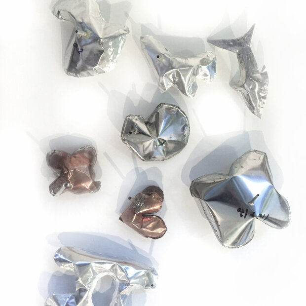 In einem ersten Schritt arbeitete sie mit verschiedenen Materialien, darunter Silikon, Wachs, Textil, Metall, Bauschaum und Kork. Mit diesen führte sie unterschiedliche Experimente durch, wobei Wasser stets als formgebendes Medium agierte.