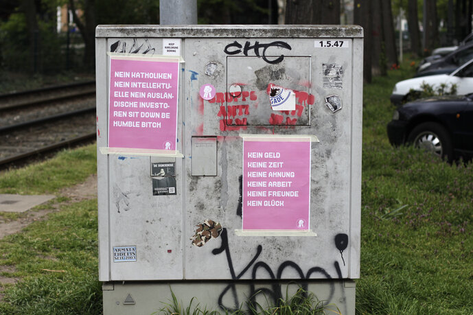 Die für den Rundgang entstandene räumliche Installation geht der Atmosphäre des Stückes nach und zeigt mittels Collage der Videodokumentation die facettenreiche Umsetzung der Performance. Fragmentarisch treffen die Geschichten der Figuren aufeinander und werden visuell neu zusammengesetzt. Es entsteht eine Interpretation und Dokumentation des Stückes, die die postapokalyptische Welt der Protagonist:innen aufgreift.