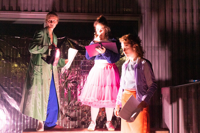 Das Stück “Tragödienbastard” von Ewe Benbenek wurde im Wintersemester 2021/2022 im Rahmen des Seminars "Das neue Stück" Studierenden technisch und künstlerisch erarbeitet und in eine knapp 2-stündige szenische Lesung umgesetzt.