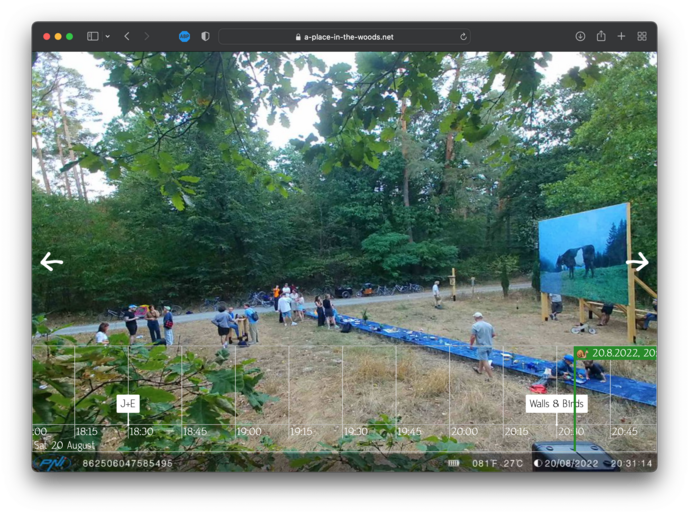 A Place in the Woods (APitW) war eine on- und offline Ausstellungs- und Veranstaltungsplattform im Hardtwald, Karlsruhe, und im Internet. Vom 6.8. bis 30.10.2022 verfolgte APitW in diesen beiden Räumen künstlerische Auseinandersetzungen mit dem Wald als Lebens-, Erfahrungs- und Ausstellungsraum und setzte sich mit der Verknüpfung digitaler und analoger Orte, sowie institutionellen Parametern und Rahmensetzungen von Kunstausstellungen auseinander. Eine 3 x 5m große Billboardstruktur und eine Wildkamera wurden auf einer Lichtung entlang eines öffentlichen Radwegs aufgestellt. Auf und um dieses zentrale Element wurden regionale und internationale, junge Künstler:innen eingeladen, sich mit dem Ort, seinen menschlichen und nichtmenschlichen Besucher:innen auseinanderzusetzen.