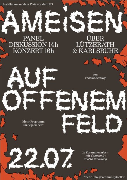 Ameisen auf offenem Feld - Installation mit Programm zu Lützerath, Karlsruhe und dem Dazwischen