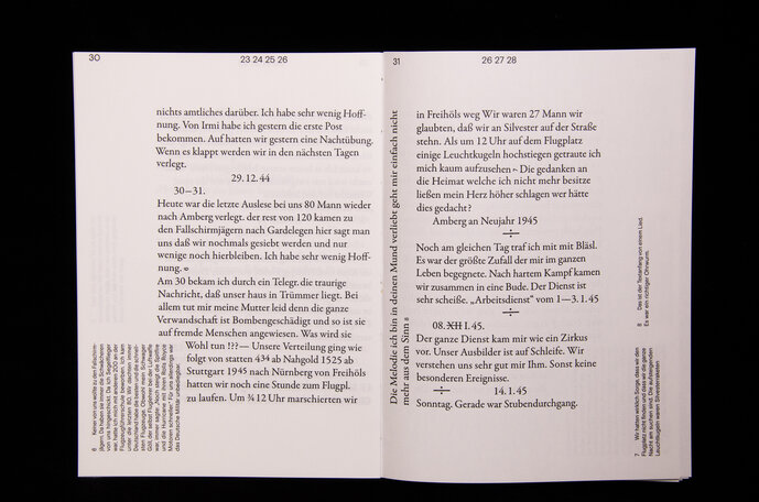 Moritz Schottmüller veröffentlicht für sein Vordiplom die Autobiographie zusammen mit dem Kriegstagebuch seines Großvaters, das dieser heimlich während seiner Zeit als Soldat und Kriegsgefangener führte. Während Moritz Schottmüller viele Stunden transkribierte, was sein Großvater aus seinem Tagebuch vorlas, wurde nicht nur Moritz Schottmüller, sondern auch Hermann Stimmler mit der Vergangenheit konfrontiert. Alte und intime Geschichten kamen zur Sprache, an die Stimmler sich zurückerinnerte oder die er sich vor 73 Jahren nicht traute aufzuschreiben. Am Rand der Seiten sind Kommentare notiert, die seine heutige Sicht auf das Geschriebene von damals wiedergeben.