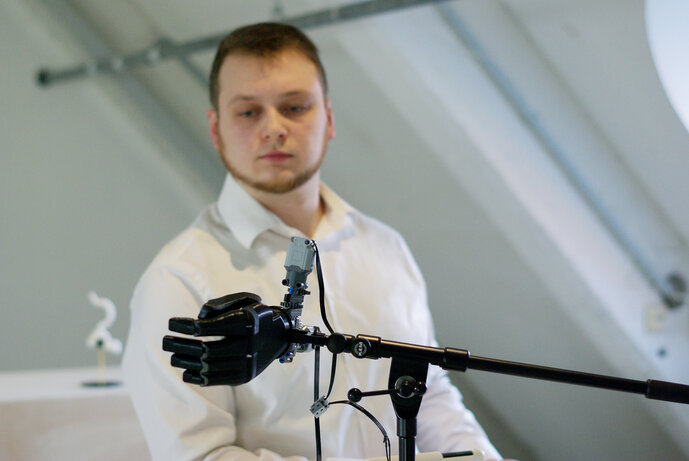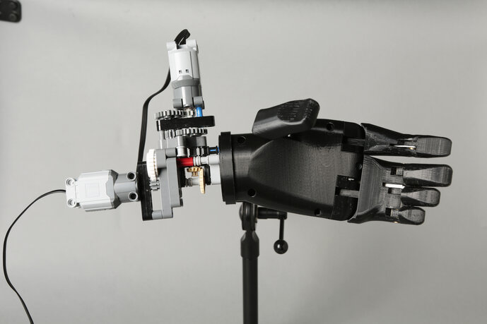 Die Diplomarbeit von Hannes Gerlach fasst in der Recherche die Geschichte und den Status Quo der modernen Handprothetik zusammen. Auf diesem Wissen aufbauend wird ein Prothesenkonzept vorgestellt, das die erkannten Herausforderungen zu bewältigen versucht.
