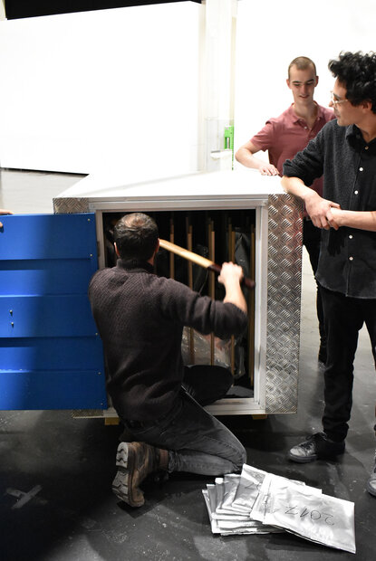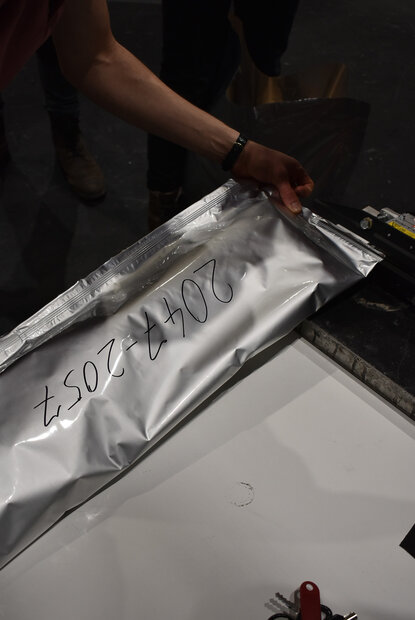 Bei einer Zeremonie zu Nikolaus 2017 wurde im Lichthof der HfG Karlsruhe ein Metallcontainer von den Studierenden mit ihren Arbeiten ausgestattet und an Christian Lohmann (Vorstand des Verbands deutscher Self Storage Unternehmen e.V.) sowie Marc Gersin (Regionalverantwortlicher Myplace/SelfStorage Dein Lagerraum GmbH) zur beinahe hundertjährigen Verwahrung offiziell übergeben. Mutter und Kind reisten hierzu aus den Niederlanden an und bezeugten die Übergabe.