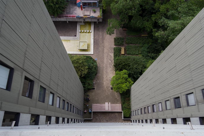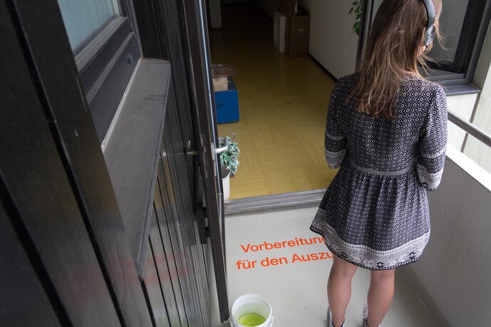 Sicherlich ist das Hochhaus der Kaiserallee 15 keine Wohnmaschine im Sinne Le Corbusiers, die alle Versorgungseinrichtungen im Gebäude integriert und auf deren Konzept sich Ballard beziehen mag. Das Bauprojekt Kaiserallee konzentrierte sich nicht auf eine vollständige Autarkie, sondern auf das Leben in der näheren Umgebung und fungiert als gewöhnliches Wohngebäude für unterschiedliche Menschen. Als Hochhaus ist der Wohnkomplex dennoch einer bestimmten Konnotation ausgesetzt. Viele Menschen auf engem Raum, Abschottung, die Anonymität, Einsamkeit und vielleicht auch die Gefahr, die davon ausgehen könnte, finden Einzug in ein allgemeines Verständnis über das Leben in einem solchen Komplex. Die thematisierten Probleme in Ballards Szenario spiegeln sich teilweise in der Realität des Hochhauslebens der Kaiserallee 15 wider, wie beispielsweise in entstandenen Bränden, ausgefallener Technik oder einzelnen BewohnerInnen, die Müll über die Balkone entsorgen. In der Gegenüberstellung dieser Parallelitäten zum Roman mit kleineren beiläufigen Beobachtungen aus der Gegenwart über die Einfachheit und Genügsamkeit des Lebens in der Kaiserallee 15, beispielsweise der Ingangsetzung des Brunnens für den Frühling, wird das Hochhaus im Audiowalk auch in seiner Alltäglichkeit thematisiert. Eher kleinere Dramen als große Zusammenbrüche stehen an der Tagesordnung. Zurückgeholt auf diese Ebene werden die TeilnehmerInnen am Ende des Walks durch das Eintreten in eine Wohnung im 17. OG des Hochhauses und das Treffen auf deren Bewohner. Man verabschiedet sich von der fiktiven Geschichte, indem man die Kopfhörer ablegt und ins Gespräch kommt. Die Möglichkeit der direkten Konversation mit den BewohnerInnen gibt den TeilnehmerInnen die Gelegenheit, Erfahrungen auszutauschen sowie Fragen zu stellen und ihnen wird ein Einblick in einen der privatesten Orte im Haus gewährt.