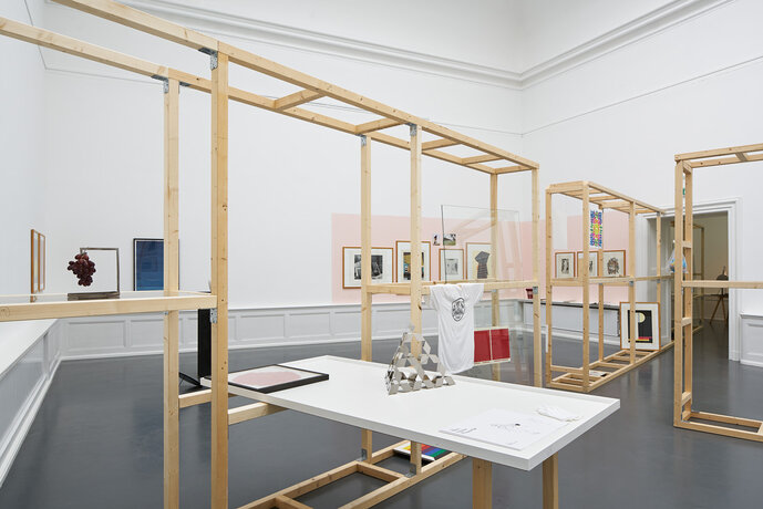 Ein Team aus KunsthistorikerInnen, KunstwissenschaftlerInnen, SzenografInnen und GestalterInnen hat sich mit Fragen der Präsentation und Kontextualisierung der Jahresgaben im Badischen Kunstverein auseinandergesetzt. Für die Präsentation ist eine mehrdimensionale Ausstellungsstruktur entstanden, die sich durch alle Räume des Kunstvereins zieht. Diese Struktur entwickelt sich aus dem sukzessiven Abtragen der Oberflächen und macht das zugrunde liegende Rohmaterial sichtbar, um dadurch neue architektonische und inhaltliche Zusammenhänge zu verdeutlichen. Die Vielzahl der Gattungen und Medien der Jahresgaben wuchs in den letzten zwei Jahrhunderten: Von Sammelmappen über Losverfahren bis hin zu individuell erwerblichen Editionen und Unikaten, durchlief das Konzept eine ähnliche Entwicklung wir die Programmatik der Kunstvereine. Der Fokus liegt dabei besonders auf den historidchen Werken, die durch die Ausstellung aus multiplen Perspektiven neu betrachtet und positioniert werden.