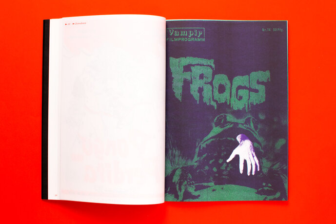 In der Mitte der Publikation befinden sich sechs vollseitige Nachdrucke von originalen Filmprogramm-Titelseiten, zweifarbig mit Riso gedruckt.