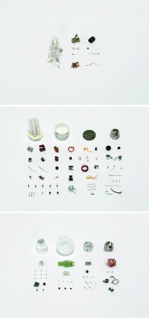 Einfach visuell wie physisch zu trennende Komponenten in Leuchtmitteln sind mit der konventionellen Glühbirne ausgestorben. Analog zur Zerlegung einer solchen, bei der ein einziger Schlag genügt, um die unterschiedlichen Materialien freizulegen, wird die Dekomposition der „Brittle Objects“ vorgeschlagen: Im Recyclingwerk zerbrechen die spröden keramischen Teile und geben die leitende Gitterstruktur sowie die diversen anderen sortenreinen elektronischen Bauteile frei, welche anschließend mit Hilfe von Überlaufmagneten etc. aussortiert werden können. Hierfür bedürfen Konfektionierung, Dimensionierung und Ausgestaltung der elektrischen Komponenten der besondere Aufmerksamkeit des Designers, wo nach üblichem Verständnis eingekaufte Teile nur "untergebracht" werden müssen. Die elektronischen Bauteile werden als Gitterstruktur gedacht. Der Einsatz einer Platine ist somit nicht nötig. Die keramischen Fließen halten die Bauteile an Ort und Stelle und übernehmen in äußersten Fällen sogar einzelne Funktionen der Bauteile. Hierdurch kann die Anzahl der benötigten und optimal zu recycelnden Materialien reduziert werden.