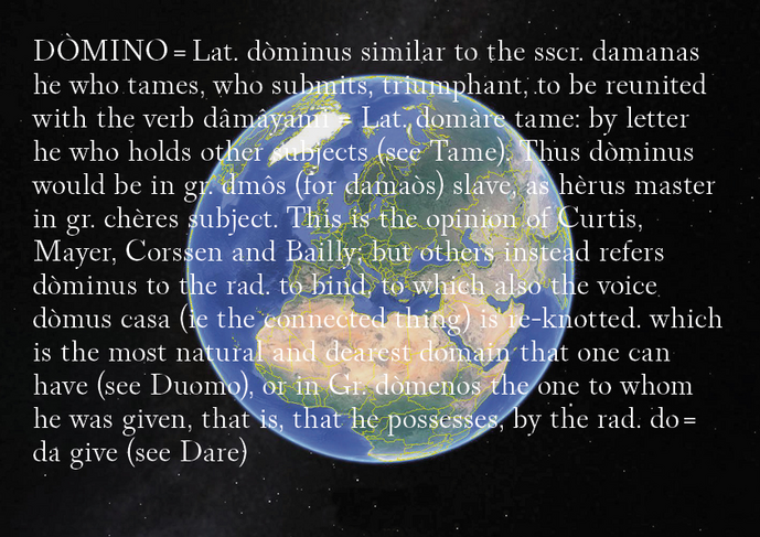 Wie dem auch sei, A. ist sich über vieles von all dem nicht im Klaren. Ebenso ist A. nicht bewusst, dass Domino's Pizza 1961 in Michigan von zwei Brüdern als Kette mit drei Filialen gegründet wurde, die inzwischen 17.000 Filialen auf der ganzen Welt betreibt und damit die größte Pizzakette der Welt ist. Aber das deutet sich schon in ihrem Namen an. Domino, von lateinisch dòminus, ähnlich dem Sanskritwort damanas, was soviel wie derjenige bedeutet, der wohnt, der herrscht, der versklavt. Aber sind diese käsigen, öligen, wie auch immer belegten Pizzen trojanische Pferde, die für oder gegen das englische Imperium kämpfen?