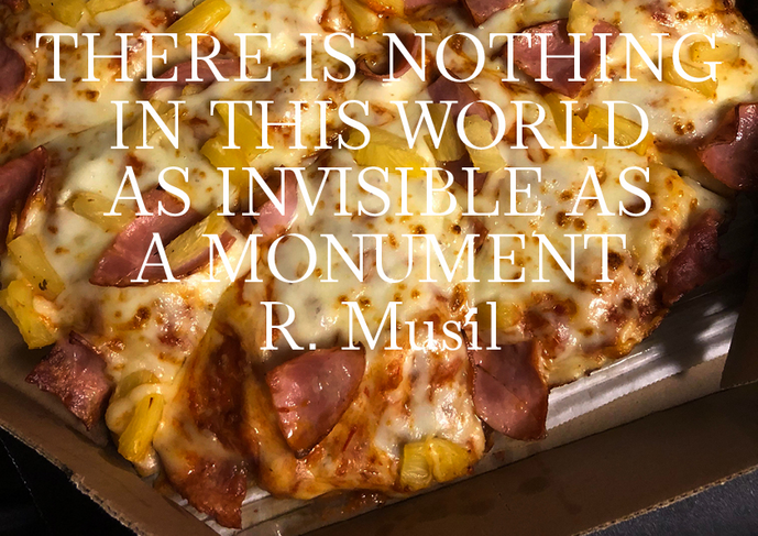 Die Identifikation ist nicht mehr einem bestimmten Ort untergeordnet und Denkmäler sind nicht mehr aus Stein. Nationen werden überwunden, man kann Bürger auf dem Lande sein und reich sein, während man bei Domino's isst. Doch was kann in einer nicht-nationalstaatlichen Zeit, in der keine Reiterstandbilder von Königen und Kaisern oder Triumphbögen mehr errichtet werden, noch als Denkmal gelten?