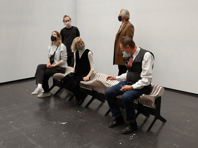 Aber es gibt einige nicht-manuelle Tätigkeiten, die von unserer Gesellschaft hoch geschätzt werden. Dazu gehören soziale Interaktion, Bildung oder die Entdeckung von etwas Neuem. Bei der Analyse der heutigen Wartebereiche findet sich ein Objekt in den meisten von ihnen: die Wartebank. Ein Objekt ohne jegliche Eigenschaften, das uns hilft, die nervöse Zeit dazwischen zu überbrücken. Dieses Objekt wird oft missbraucht oder beschädigt, bedingt durch das Bedürfnis des Benutzers nach Unterhaltung. In sie wird mit dem Schlüssel eingeritzt oder sie werden impulsiv umgekippt, bis sie zusammenbrechen.
