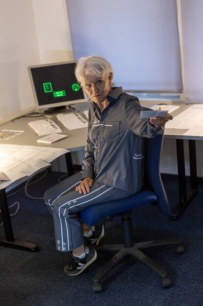 Erikas durchdringende Augen blicken uns alle aufmerksam an, die Mundwinkel deuten ein neutrales Lächeln an. Doch je länger man sie betrachtet, desto schwerer wiegt ihr Blick: normierend, klassifizierend und ausschließend. Ihre Stimme, körperlos und fragmentarisch, erzählt aus dem Inneren dieses leeren Gesichtes und stellt die Frage, welche Gesichter und Narrative durch sie aus dem kollektiven Bild verschwinden.